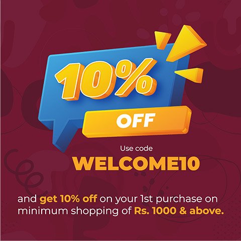 Use code WELCOME10 and get 10% off on your 1st purchase on minimum shopping of Rs. 1000 & above.