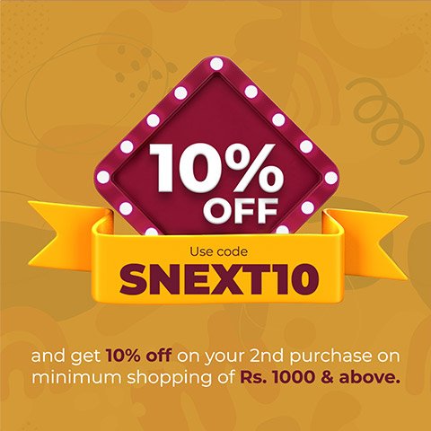Use code SNEXT10 and get 10% off on your 2nd purchase on minimum shopping of Rs. 1000 & above.