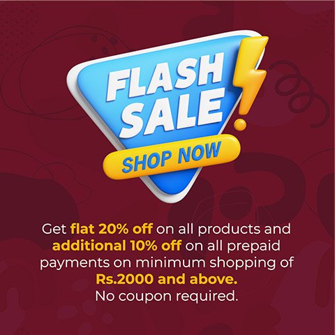 Get flat 20% off on all products and additional 10% off on all prepaid payments of Rs. 2000 & above. No coupon required.